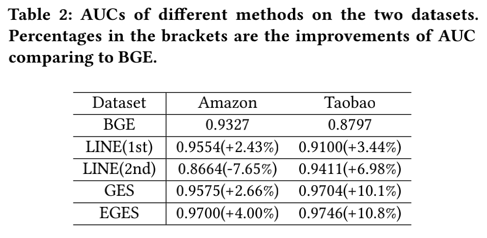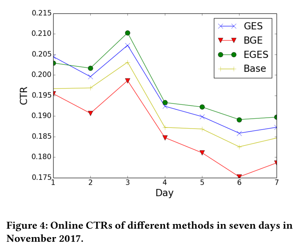 基于淘宝真实的数据流量进行了线上的CTR对比,EGES的表现是最好的。