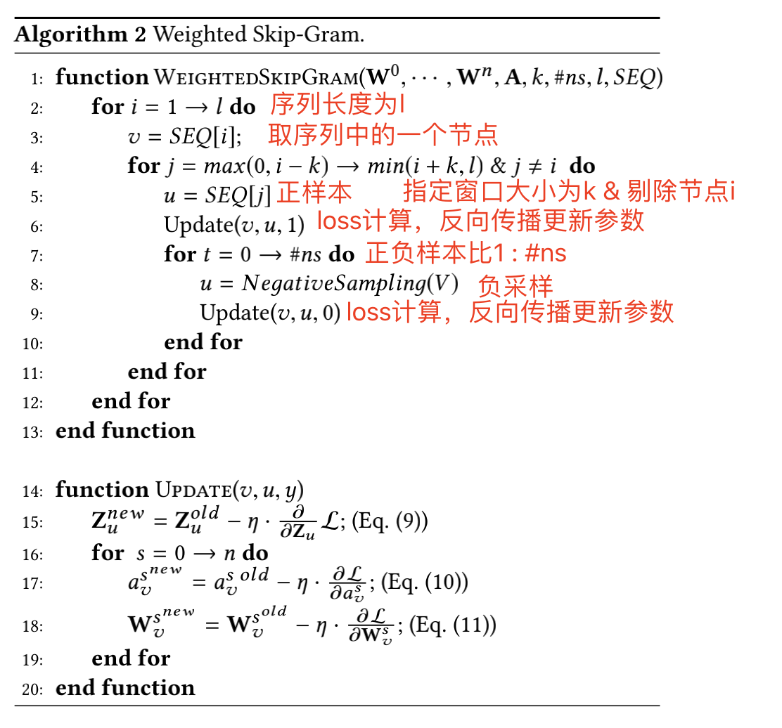step2: 用 skip-gram + negative sampling 算法学习每个节点的embedding表示
